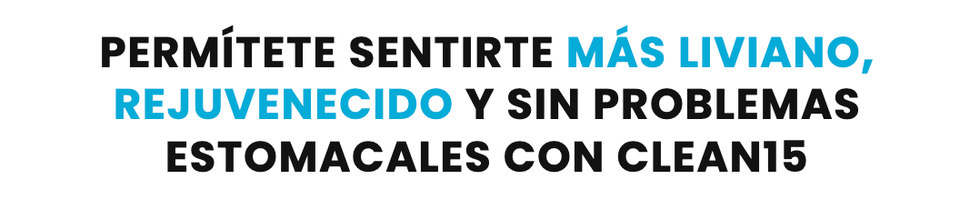 Clean15™ trabaja en conjunto con ingredientes 100% naturales para potenciar la mejora de la digestión, revitalizar tu metabolismo y ayudarte a la quema de grasas, permitiendo que tu cuerpo funcione de manera más eficiente. Además, te ofrece un enfoque saludable y natural para sentirte más ligero/a