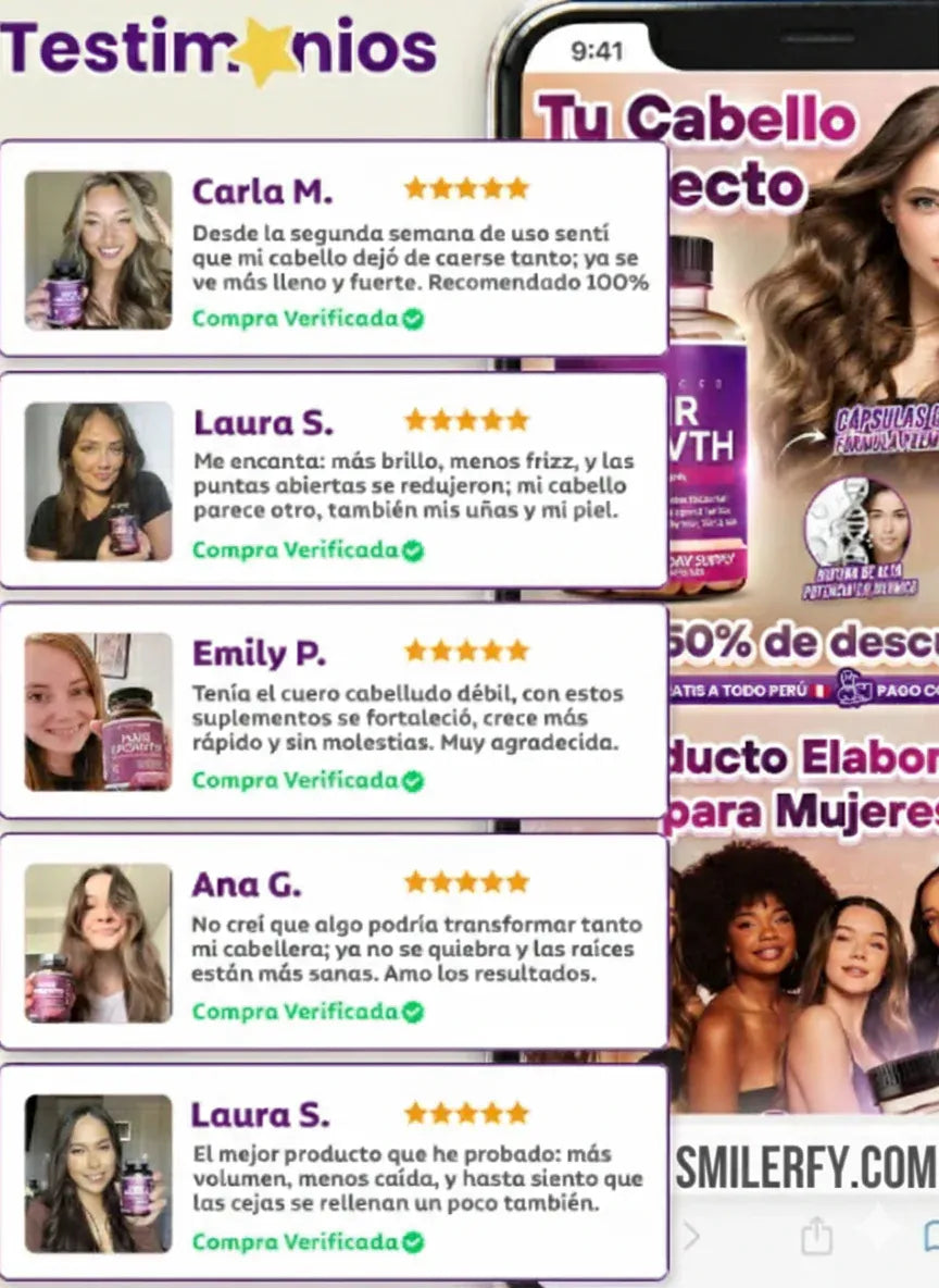 La mayoría de nuestras clientas notan menos caída y más brillo en 3 a 4 semanas. Los resultados óptimos se ven después de 3 meses de uso constante.