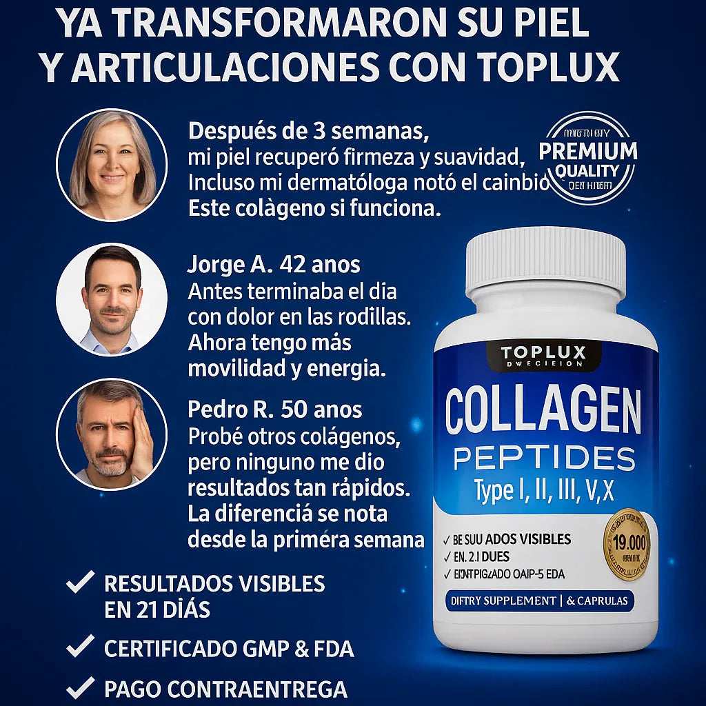 La mayoría de nuestros clientes reporta cambios visibles desde la tercera semana, especialmente en firmeza de la piel, brillo del cabello y comodidad en articulaciones. Cada cuerpo es distinto, pero el uso constante es clave.