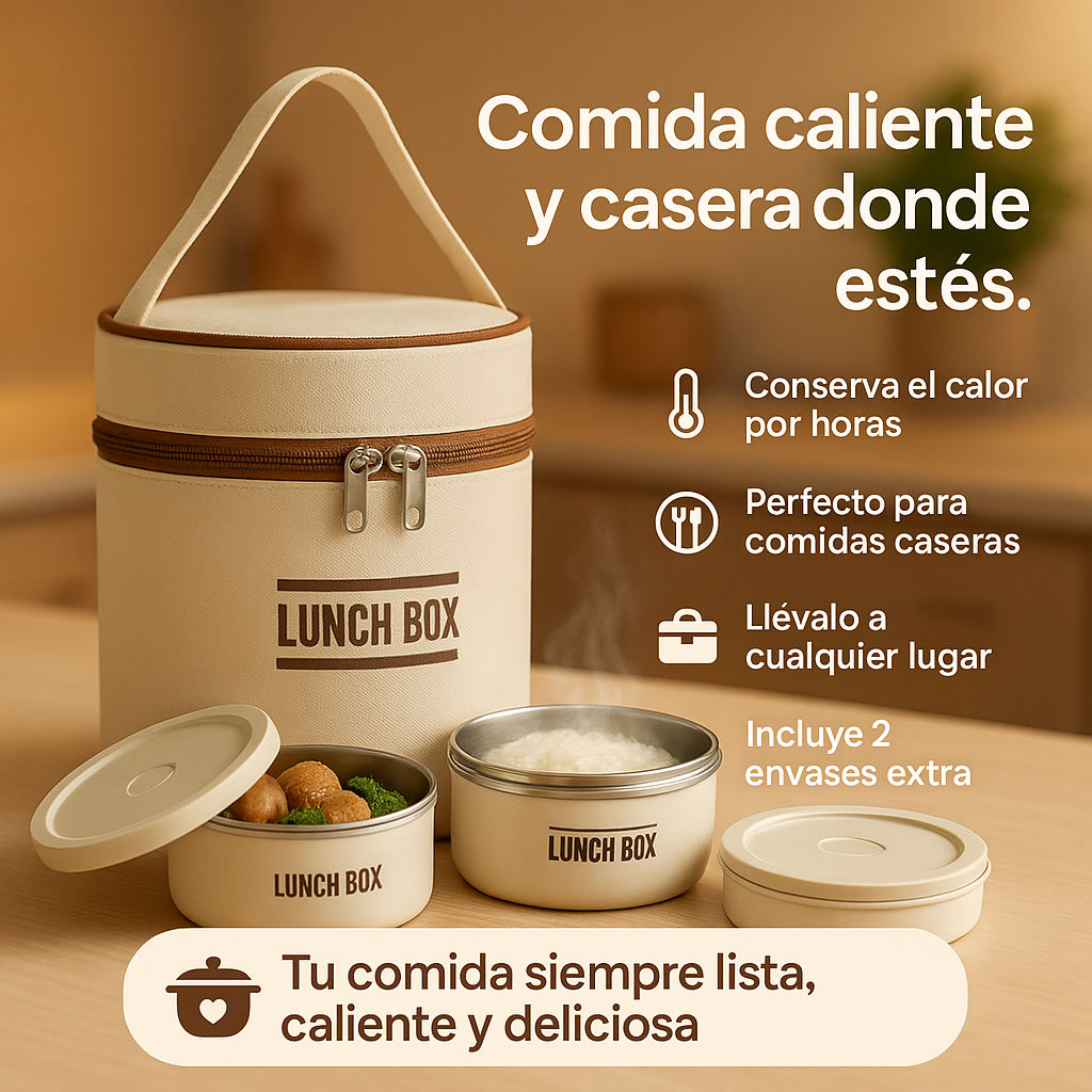 Despídete de los almuerzos fríos y sin sabor. La ThermoKeep™ mantiene tu comida caliente por horas, conservando ese gusto casero que reconforta y te llena de energía. Es abrirla… y sentir que recién salió de la cocina.